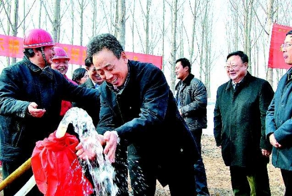 魏宏一行赶到工地时,正赶上该工地成井,一股清泉从井中汩汩流出。魏宏禁不住上前捧了一口水放在嘴边,“甜!”他发出了由衷的赞叹。随后,魏宏亲切慰问了打井工地的每一位队员,并带去了四川老家的祝福。