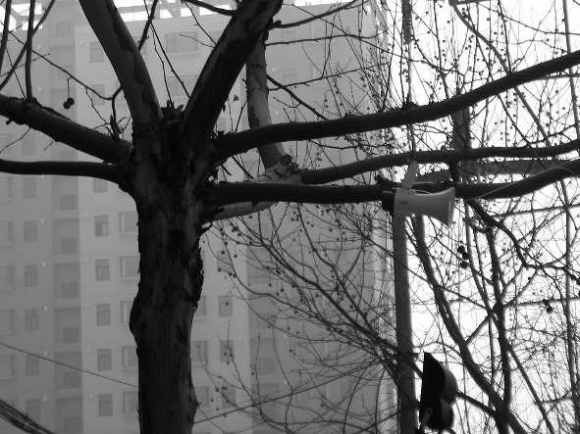 一位经过这里的市民听见喇叭的声音好奇地寻找“发声源”,抬头一看原来在树上有个喇叭。“还真能想招,可惜效果不好,什么都听不清楚,反而让人很不舒服,这里本来就吵,这回更热闹了。”这位市民说。旁边一家超市的工作人员说,这个喇叭挂在树上有很长时间了,每天都会“广播”,有时喇叭播音效果不好,发出很多杂声,让人听了很不舒服。