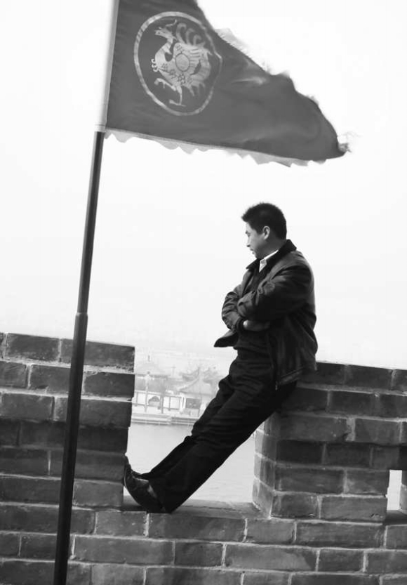 2月23日中午,一名市民站在20米高的古城区西北角楼的城墙上拍照留念,随时都有坠落的危险,在场市民着实为他捏了一把汗。 本报记者 李军 摄影报道