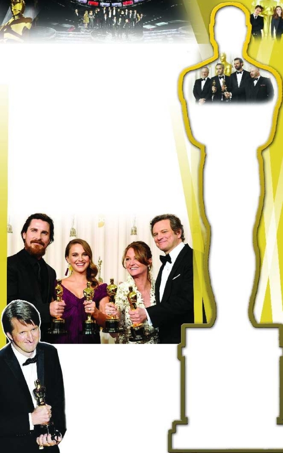 《国王的演讲》男主角科林·费思问鼎影帝桂冠,娜塔莉·波特曼折桂影后。值得一提的是,张艺谋新片《金陵十三钗》的男主角克里斯蒂安·贝尔凭借《斗士》获得了最佳男配角。贝尔因主演《蝙蝠侠》而走红,在《斗士》中这位英国威尔士男星出演一名骨瘦如柴、眼窝深陷、说话含糊不清的瘾君子。年逾50岁的梅丽莎·莱奥同样凭借《斗士》获得了最佳女配角奖。上台领奖,面对94岁的颁奖嘉宾、老牌影星柯克·道格拉斯,莱奥激动得语无伦次:“你能掐我一下吗?这是我的?我的腿在发抖……”