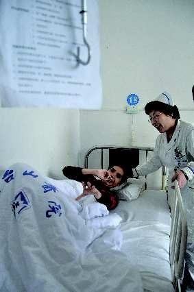 记者看到,这位老人比较消瘦,目前仍不会开口说话,只会和医护人员用手势作简单的交流。