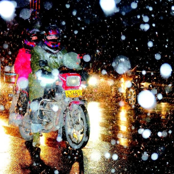 2月28日傍晚,临沂市区飘起鹅毛般的大雪。