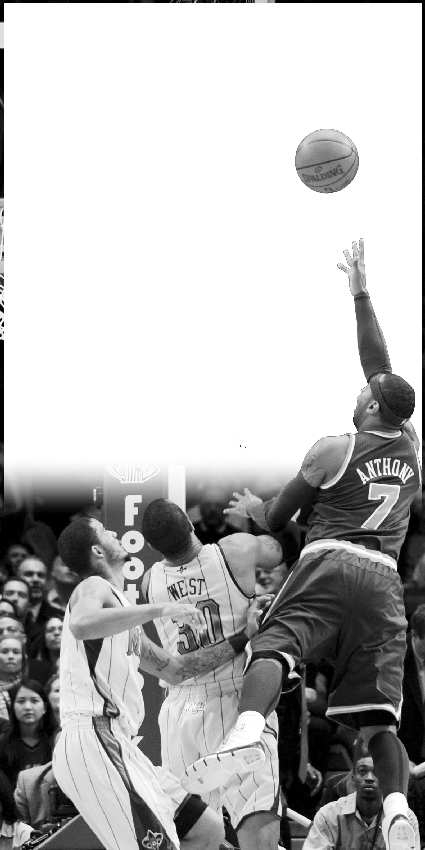 3月2日,尼克斯队球员安东尼(上)在比赛中投篮。当日,在纽约举行的2010-2011赛季NBA常规赛中,纽约尼克斯队主场以107:88战胜新奥尔良黄蜂队。 新华社发