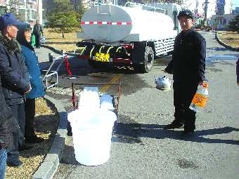 3日,记者来到金色港湾小区看到,“从2月28日开始,停水已经整整4天了,幸亏有送水车从3月2日开始送水,要不日子都没法过了。”居民王先生说,虽然原来也会停水,但是停水的时间很短,几个小时就来了,因此家里也没有准备储水的容器。可是这次一停就停了4天,并且还不知道什么时候来水。没办法,家人只好去超市购买了一个大水桶。“接上这么一桶就能用两天左右,但这毕竟不是长久之计,现在连家里的厕所都不敢用,每次都得大老远去公共厕所。”