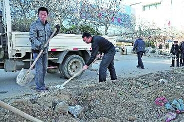 3月3日,德州湖滨中大道广川宾馆前,德州园林处的工作人员正准备将绿化带里的植株迁移至他处,为即将修建的公交车站亭“让路”。德州广川罗庄公交站将告别有站无亭的历史,等车的市民将享受更好的候车条件。