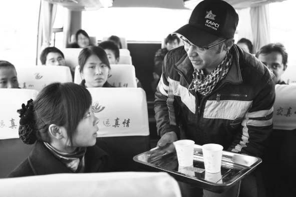 3月5日是学雷锋日。3日下午,聊大26名青年志愿者到客运车上,帮30多名乘务员练习英语口语。图为志愿者穆罕默德(Mohamed)向乘务员做示范。 本报记者 李军 通讯员 于丽玲 摄