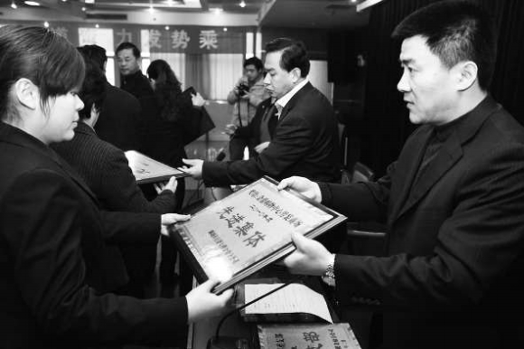 3月3日上午,金鼎分公司“2010年度工作总结表彰暨2011年度工作要求大会”在公司会议室隆重召开,共500余人参加。张霞副总代表分公司领导班子作《公司2010年度工作总结》。大会对2010年度先进单位、个人以及元宵节文艺汇演、扎花灯比赛获奖者进行了现场颁奖。图为:给先进单位、个人颁奖。本报记者 李军 摄影报道