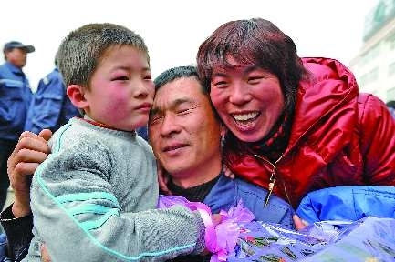 3月3日,从利比亚返回的徐中福与家人团聚。徐中福家住日照市东港区南湖镇大北湖村,去年4月1日跟随公司到达利比亚米苏拉塔市,从事电工工作。3日上午,徐中福与其他212名在利比亚务工的日照籍员工安全返回。 本报记者 周青先 摄影报道