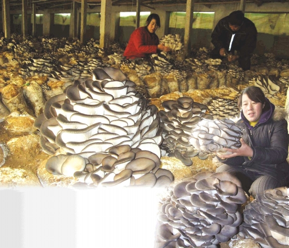 宁阳县海鑫生物科技有限公司的工作人员正在采摘巨型蘑菇。本报记者 赵兴超 摄