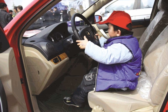 3岁半的睿睿“试驾”新车,玩得不亦乐乎。