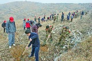 3月7日,十六里河街道办组织机关工作人员及志愿者100多人,栽植柏树苗1500余棵,200余亩。通讯员 侯德喜 摄