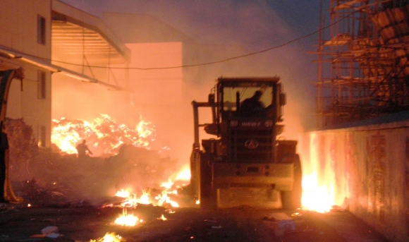 3月6日晚6时许,莒南县板泉镇一造纸厂制浆车间发生大火,公安干警和消防官兵迅速赶到现场,经过5个多小时的奋力扑救,大火才被扑灭。据民警介绍,此次火灾是由车间内易燃物品发生自燃引起的。