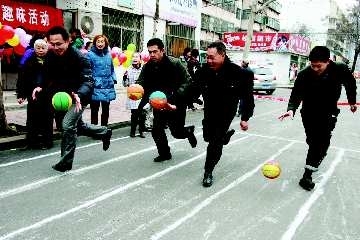 7日,在潍坊市松园子社区,社区居民共同参加了一场趣味盎然的运动会。运动会上,大人小孩齐上阵,尽兴之余让那些平时来往不多的左邻右舍相互认识、熟悉,也增进了邻里间的感情。