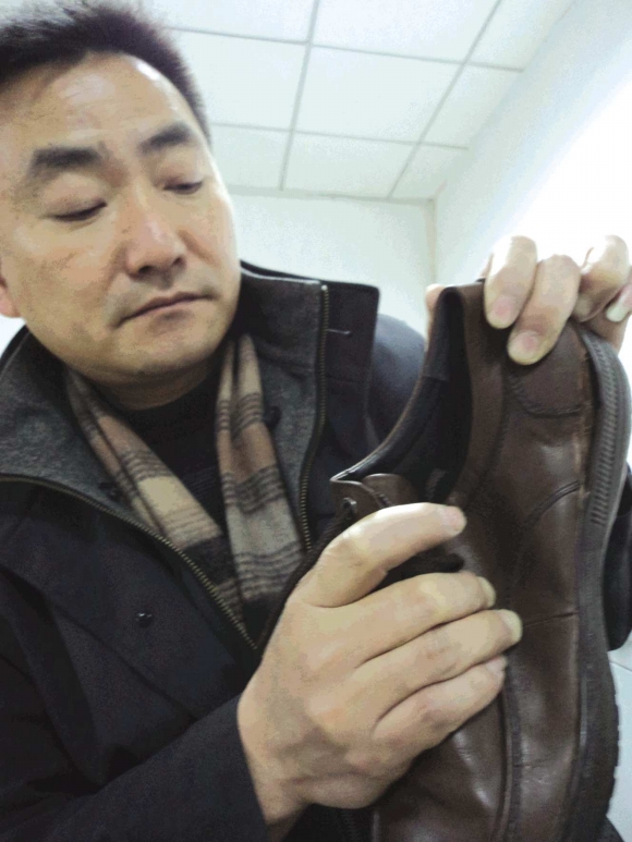 6日,泰城市民祭先生拨打本报消费维权热线称,1月27日,他在泰城一商场的犀牛皮鞋专柜购买了一双优惠后为405.9元的男士皮鞋。春节期间穿着这双鞋串了几趟门,大部分时间都是放置在家里。上班一个星期后,祭先生准备保养一下皮鞋,但是盯着皮鞋仔细一看,发现鞋梆和鞋跟部分都已经开胶了,而且开胶的部位轻轻一碰裂缝逐渐变大。“我花了400多元买的皮鞋,也不能就穿这么几天就全开胶了,现在我是刚发现的,但是看这个样子,也不是这两天才开胶的,这才穿了20天,这名牌皮鞋也太不耐穿了。”祭先生气愤地说。