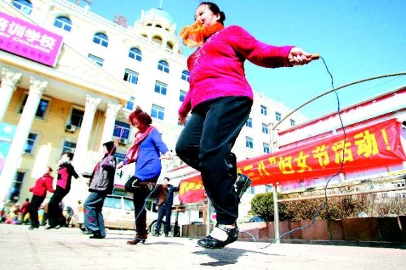 7日上午,芝罘区新桥东社区举办了庆“三八”拔河、跳绳比赛,社区居民积极参赛。
