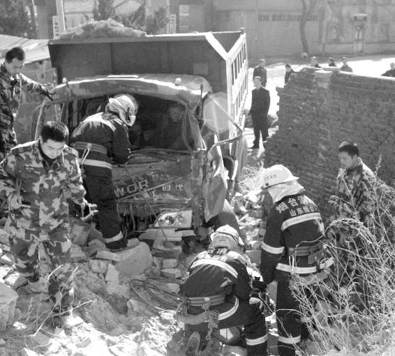 本报3月7日讯(记者 鞠平 通讯员 邹方蕾)7日下午,在烟台市莱山区林家疃路段传来一声巨响,附近的居民随后看到,一辆大货车破墙而出,挡风玻璃碎了一地,司机被困在车内。原来,驾驶员在行驶中突然发现制动系统失灵,为了防止货车冲上主干道,他毅然撞向了路边一厂房的外墙逼停货车。
