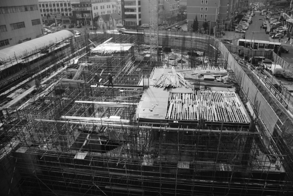 8日,从高处俯瞰燕儿岛路靠近香港中路处的坡道式停车楼,地下三层的施工已接近尾声。据了解,坡道式停车楼分为地下三层,地上七层,其中地上一层承接汽车美容与修理等业务。建设方技术负责人肖师傅介绍说,停车楼采用回旋式坡道,总建筑面积达15240.71平方米,建成后可容纳138个停车位,一定程度上能缓解周边停车难的状况,预计整个工程在6月30日前后完工。