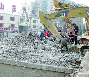 本报3月11日讯(记者 邢振宇 实习生 张宁) 10日夜间,张庄路拓宽改造工程开始封闭施工,兴济河桥旧桥将拆除重建,由原40米拓宽至60米。11日,记者在施工现场看到,施工人员正在紧张施工(右图),5台破碎锤齐上阵,30余年的兴济河桥力争两天内拆完。