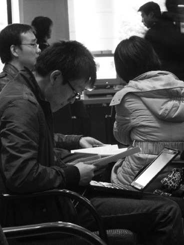 5000名代表委员齐聚北京,从他们口中“撬”出13亿人的期盼,上会采访的媒体记者可要动一番脑筋了。图为在会客厅等着“围堵”代表委员的同行们,或忙于做功课,或翻阅其他媒体的报道,很是认真。