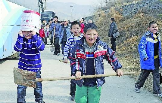 孕妇鲁洪波和爱人种下一棵纪念树。