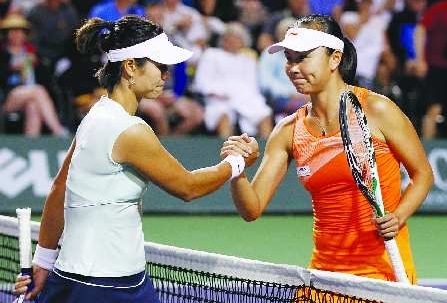 在这场用时2小时2分钟的比赛中,29岁的李娜开场占据了上风,首盘不给彭帅一次破发机会便以6:4获胜。不过,后两盘场上形势发生了逆转,彭帅不仅夺回了主动权,而且在关键的破发分把握上明显强于对手,结果以两个6:3连扳两盘获胜。