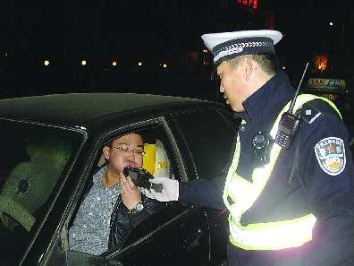 3月12日晚7点半至9点半,德州交警直属二大队在德州中心血站路口和德州经济开发区董子园周边,组织了集中查处酒后驾驶行动。300余辆被查车辆中,9名司机酒后驾驶吃到罚单,3辆机动车被暂扣。图为民警正在对过往司机进行酒精测试。
