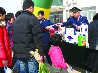 图为工商人员正向市民介绍这些“山寨货”的识别方法。