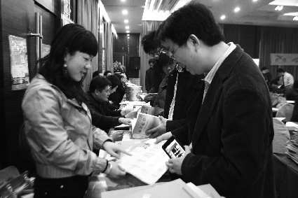3月13日在临沂召开的第七届鲁南农资产品信息技术交流会上,参会企业正在向农资经销户推介自己的产品。
