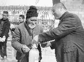 3月12日,王宝友将花生油等慰问品送到刘家朱许社区老人的手中。