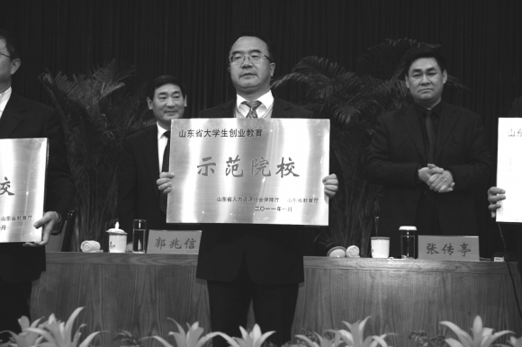 近日,山东省高校毕业生就业暨促进创业工作现场推进会在青岛召开,山东艺术学院、山东英才学院等15所高校被评为“山东省大学生创业教育示范院校”。此次入选的15所高校中,山东英才学院是唯一一家获得该项殊荣的民办高校。英才学院夏季亭院长代表学院领取“山东省大学生创业教育示范院校”奖牌,并获15万元专项奖励基金。夏季亭院长表示,将进一步推动学院创业教育机制创新,加大对创业教育的投入,充分利用好创业孵化基地、大学生就业实习基地、校企合作等多个优势平台,做好大学生创业教育工作。