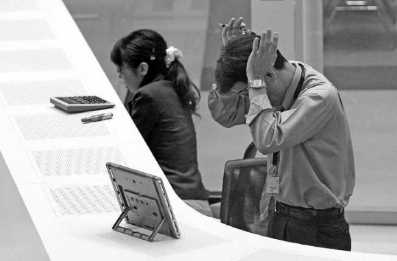 ▲3月14日,日本东京股票交易所的工作人员在忙碌。 新华/路透