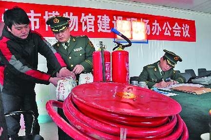 14日,德州市消防、工商和质监三部门联合,对德州市消防产品的质量进行了抽查,并查获了一批不合格的消防用品。图为工作人员正在对抽查到的产品进行检验。 本报记者 苏超 摄