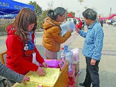 13日,汶上县质监局举办了质量兴县成果展,利生面粉、汶上芦花鸡、精良碾米机等70余家企业参展,通过设立曝光台,展示假冒伪劣产品,提高群众的质量意识。图为质监部门工作人员讲授违规PET水桶的危害。