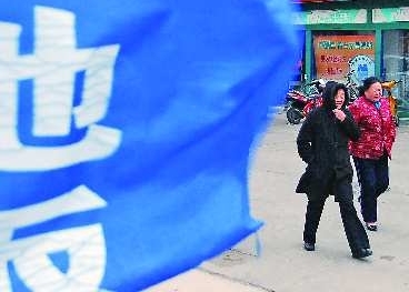 14日,在黄海三路上,市民顶着风急匆匆地赶路。受北方冷空气的影响,日照市