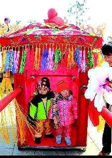 作品描述:在栖霞市举办的秧歌会上,两个漂亮的幼童站进演出用的花轿里面,勾勒出一幅欢乐场景。