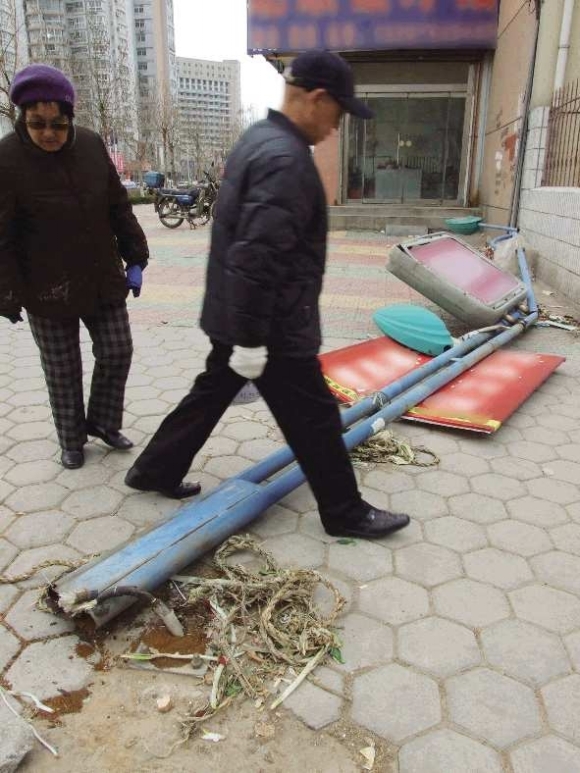 本报聊城3月14日讯(记者 张召旭)“万一掉到楼下多危险啊!”14日,家住阳光花园小区顶楼的刘先生心有余悸地说,这场大风把楼顶七八台太阳能热水器吹离原来的位置,有的热水器甚至被风刮到了楼顶的边上。