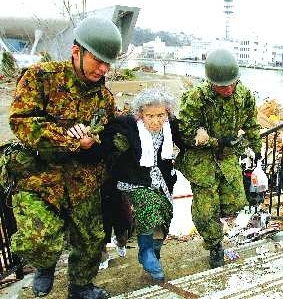 3月15日,在日本宫城县,一名妇女被困5天后被救援人员救出。