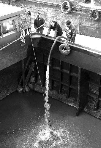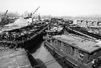 为了使船只顺利通过,船员们需要向船舱里加200至300吨的水,将船身下压近0.5米后才能通过。每艘船加水需要将近3个小时的时间,“时间就耽误在这里了”。