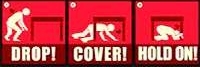 伏地、遮挡、手抓牢 美国红十字会灾难教育部前总管罗伯茨强调,根据对加州地震生还者所作的综合统计,地震最危险的伤害因素并非轰然塌下的屋顶,而是四处乱飞的家什和碎玻璃。“伏地、遮挡、手抓牢”(Drop、cover、hold on)的地震口诀正是针对这个。这个口诀教导大家,在地震来临时要赶紧钻到桌子下边或用靠垫捂住最脆弱的头部,手牢牢抓住桌子腿并做好桌子大幅度移动的准备。