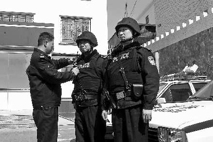 15日上午,鲸园派出所民警试穿刚配发的防弹衣、警用钢盔等新式装备。为保障民警在出警时的人身安全,鲸园派出所在全区公安系统内率先购置了新式警用装备,新装备不仅更轻便、实用,也大大提高了民警自身的防御能力。