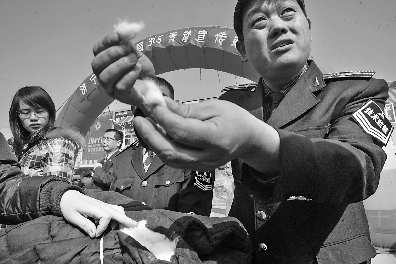 记者看到,活动现场,质监部门的检测咨询台设了有近30米,依次分布着金银珠宝检测、空气质量咨询、特种设备咨询、黑心棉展示、眼镜和血压计检测等多个展区。期间,不少市民把随身佩戴的首饰摘下来现场要求检测;黑心棉展示、眼镜、血压计检测台前也挤满了市民。“面粉增白剂、三聚氰胺、农药残留、食品添加剂,我们老百姓最关心食品质量安全。”活动现场,一位大爷拿着实验室发放的宣传页叫好,希望执法部门多关注食品质量。