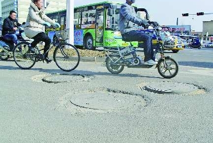 一位住在解放路社区建设新村的吕大爷告诉记者,前一段时间他到附近超市购物,回来的时候由于天色已晚,没看清其中一个凸起的井盖,就差点绊倒。幸亏当时自己是步行,要是骑自行车的话,那就非摔伤不可。