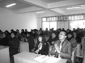 15日,幸福社区邀请山东省公民健康素养教育工程烟台工作站的工作人员,给辖区中老年人开展了一堂以“和谐我生活,健康中国人”为主题的公民健康素养教育特别公开课。 通讯员刘秀琴摄
