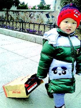 作品描述:老公新买了双鞋子,快两岁半的儿子要拿,可惜人小力气也小,提了一会儿就提不动了。不过他开始拖着走,瞧这架势连路人都笑了起来。