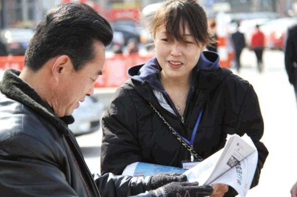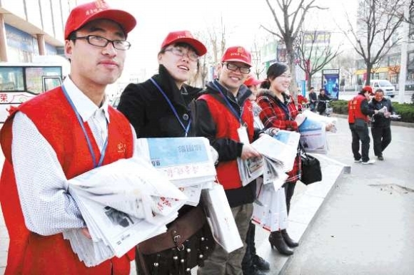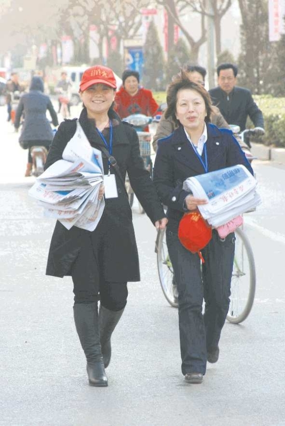 “3·15”消费者维权日这天上午,齐鲁晚报·今日聊城30多名编辑记者走上街头体验卖报,服务读者,征集意见。