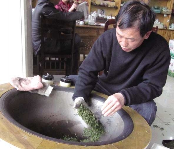 天宇平价茶叶专卖店工作人员说,每年他们都会请师傅来现场炒制茶叶,炒茶选用的鲜叶都是“两叶一芽”的上等鲜叶,这样炒出来的茶叶,茶型才会好看,冲泡出来才更有味道。10天下来差不多能炒14斤茶叶,其珍贵程度可想而知。“现场炒制的茶叶按照每斤380元的价格出售。”工作人员说,通常5斤鲜叶能炒制1斤茶叶,每斤鲜叶75元,师傅每天100元工钱,再加上运费,现场炒制的茶叶都是赔本销售。