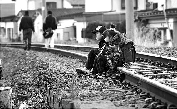 3月16日,岩手县石卷市,阿部兄妹跟随父母前往亲戚家避难,他们在途中停下来,在一个铁轨上休息。