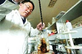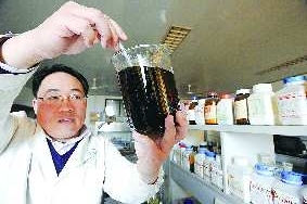 山东轻工业学院赵祥忠副教授在实验室按照配方制作可乐。 可乐制作成功。