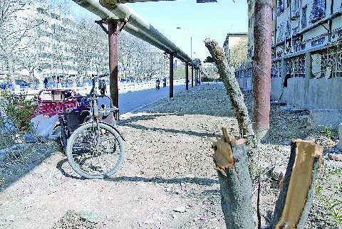 16日下午,记者来到了济宁市中区枣店阁小区5号楼。在5号北面墙外,一处宽约7米、长约50米的空地已经被平整完毕。平地中间还有直径达到20多厘米的树根,空地的西边两棵被砍断的树木断茬孤苦伶仃地竖立着,仅存的几个冬青已经泛出绿色,依稀可以看出,该处空地原来是一个花坛。