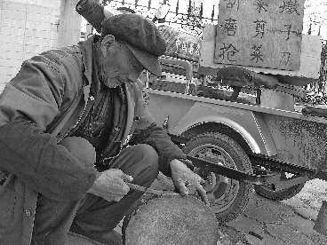 “一天能磨三四十把刀,但也不一定。”孙旭云说,原来在农村走街串巷,生意很不错,但现在村民也不做鞋和衣服了,剪刀也不用打磨,生意做不下去了,这才转到城里来磨剪子抢菜刀。
